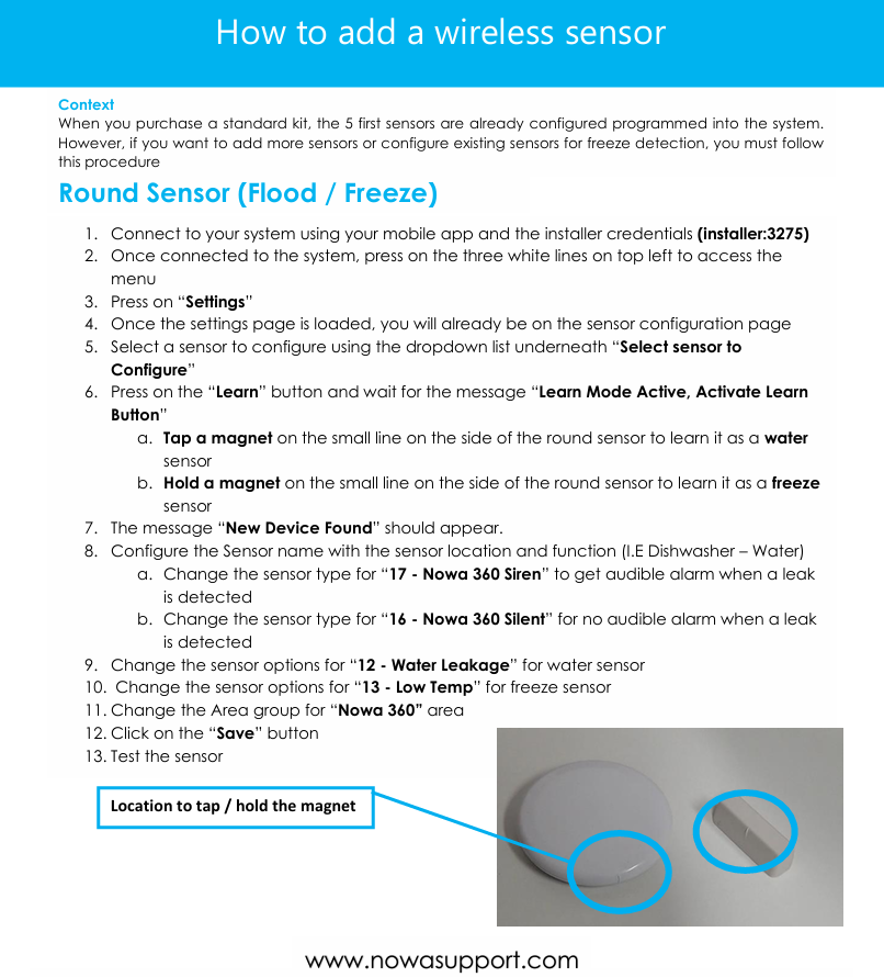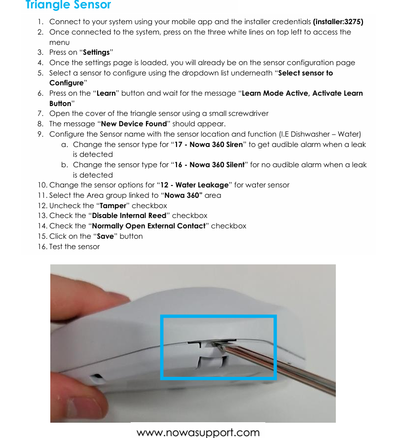 This document explains to you all the necessary steps to configure a new water sensor (triangle or round sensor).