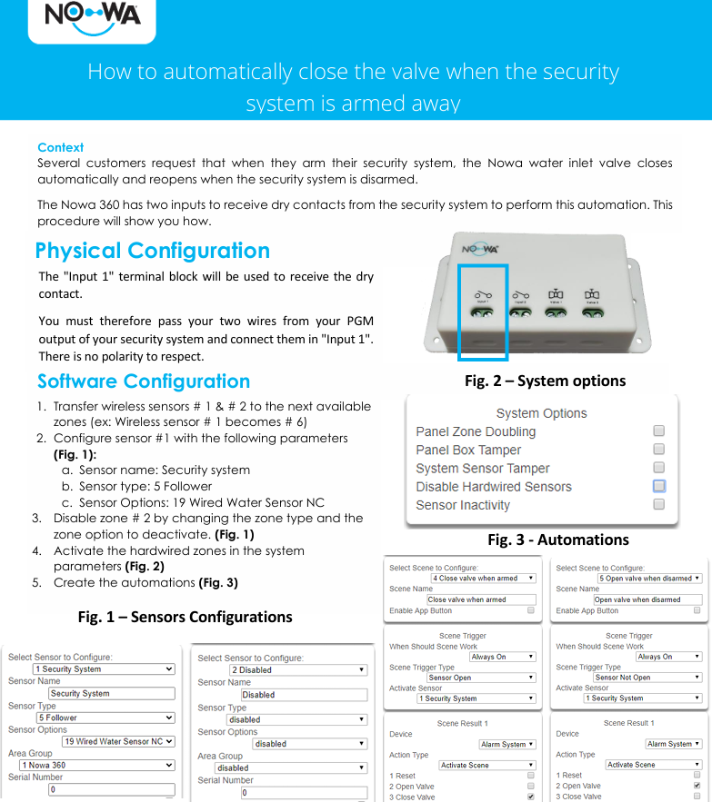 Several customers request that when they arm their security system, the Nowa water inlet valve closes automatically and reopens when the security system is disarmed.