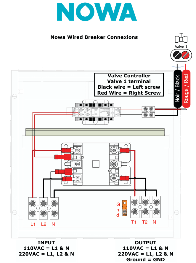 Here is the schematic that explain how to connect your Nowa breaker to your Nowa 360 system.