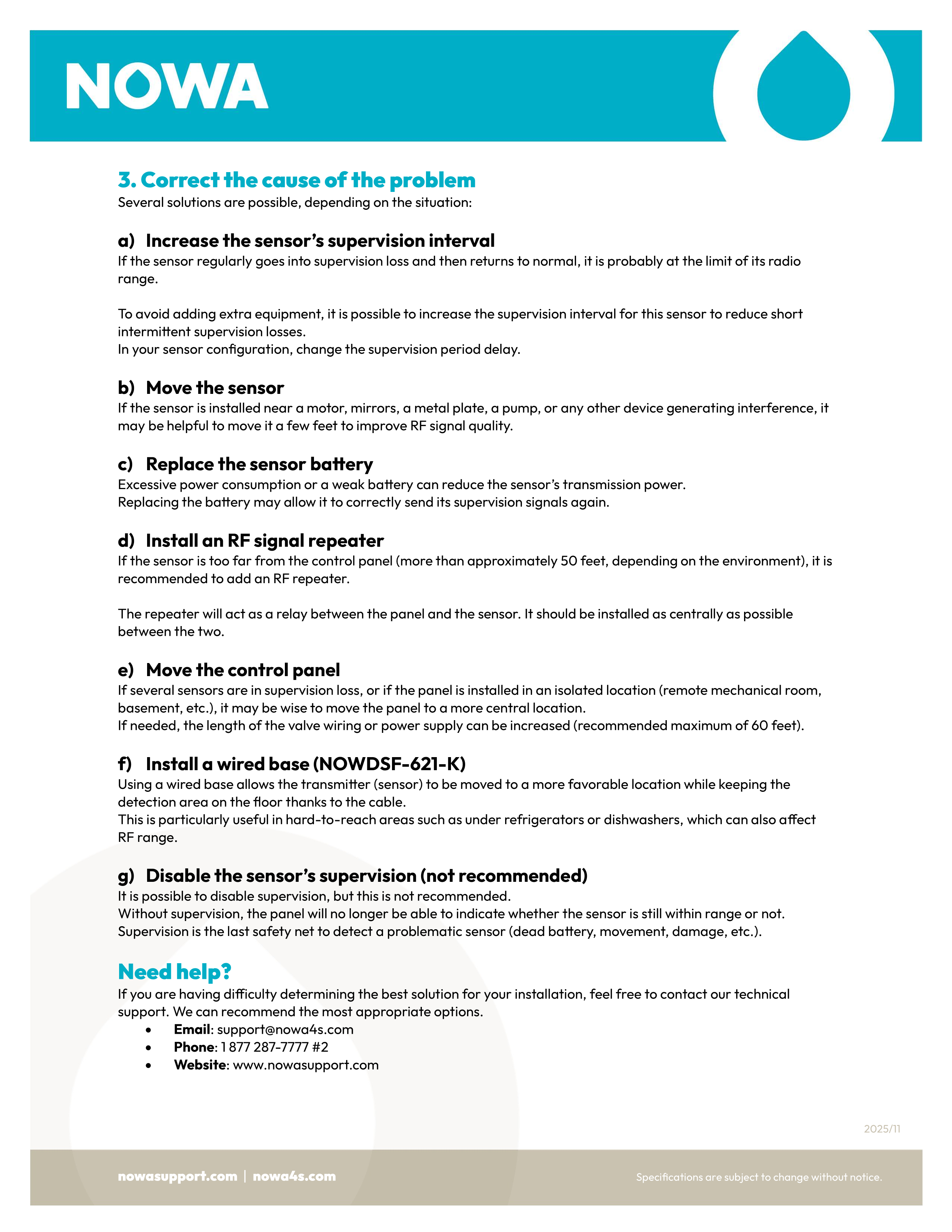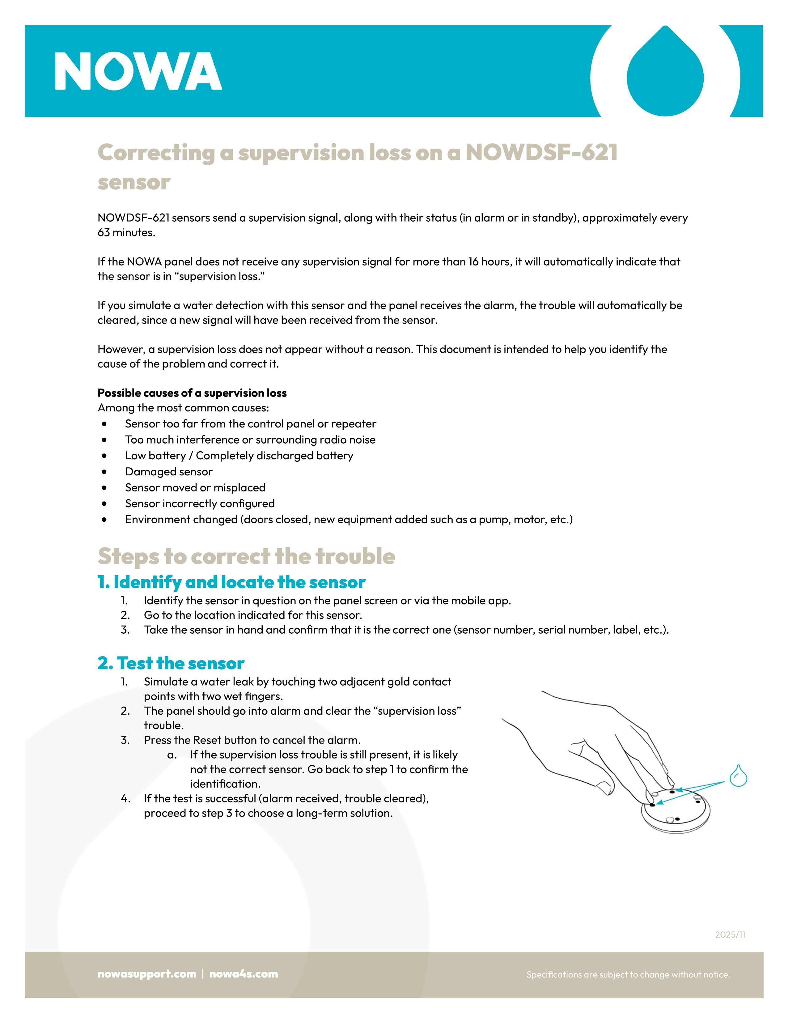 Correcting a supervision loss on a NOWDSF-621 sensor