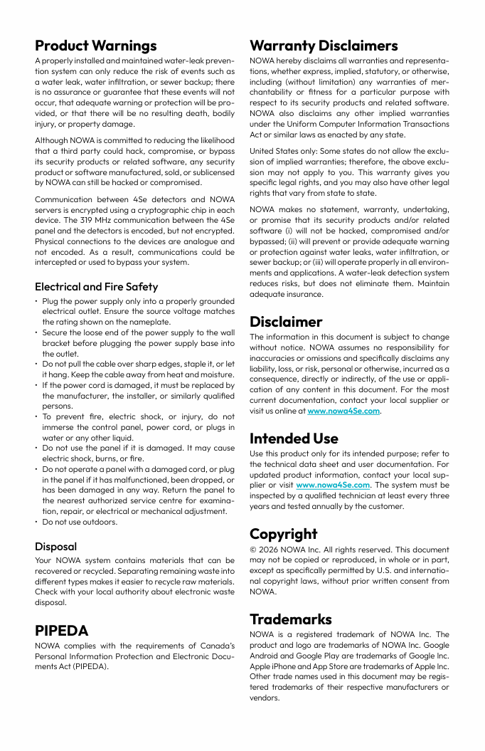 Installation and Operation manuel NOWA 4Se