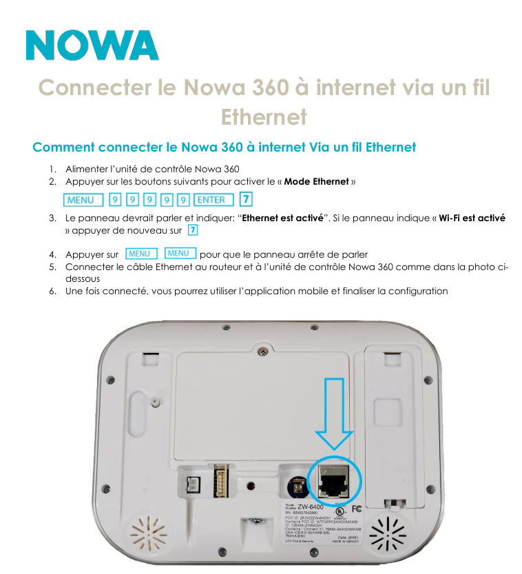 Cette procédure vous explique comment connecter un Nowa 360 à Internet via un câble Ethernet