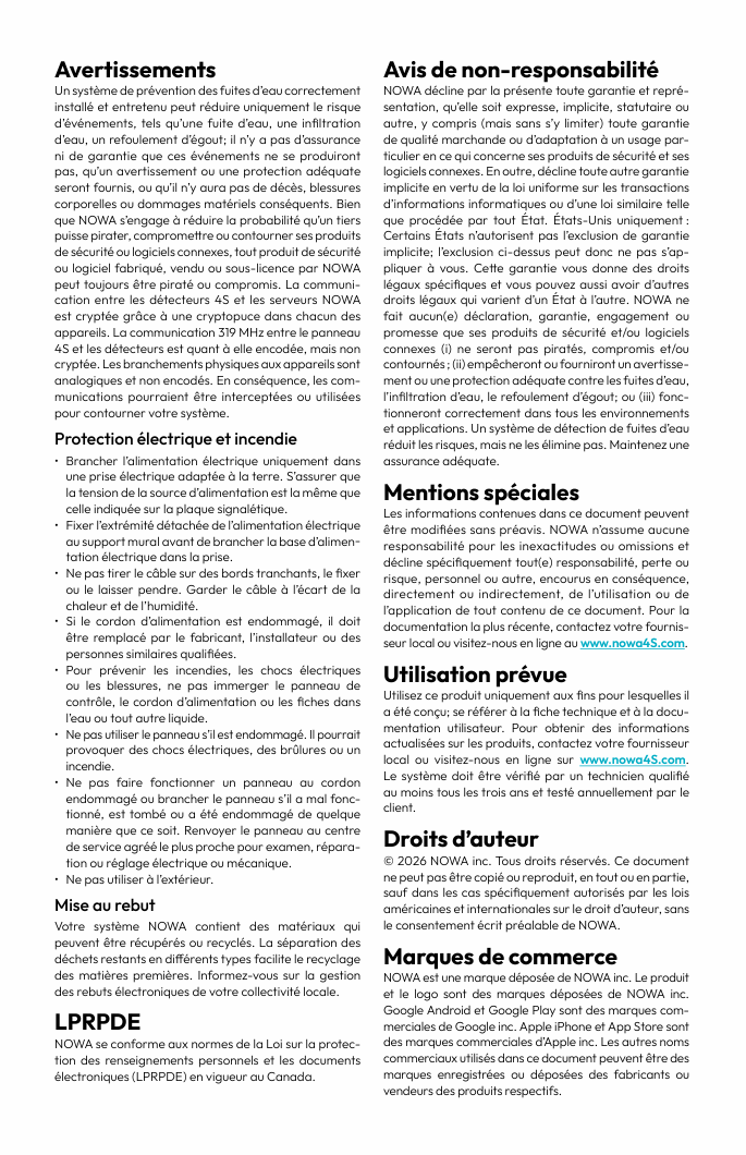 Ce manuel vous guidera dans l'installation de votre système NOWA 4S. De plus, il pourra vous aiguiller