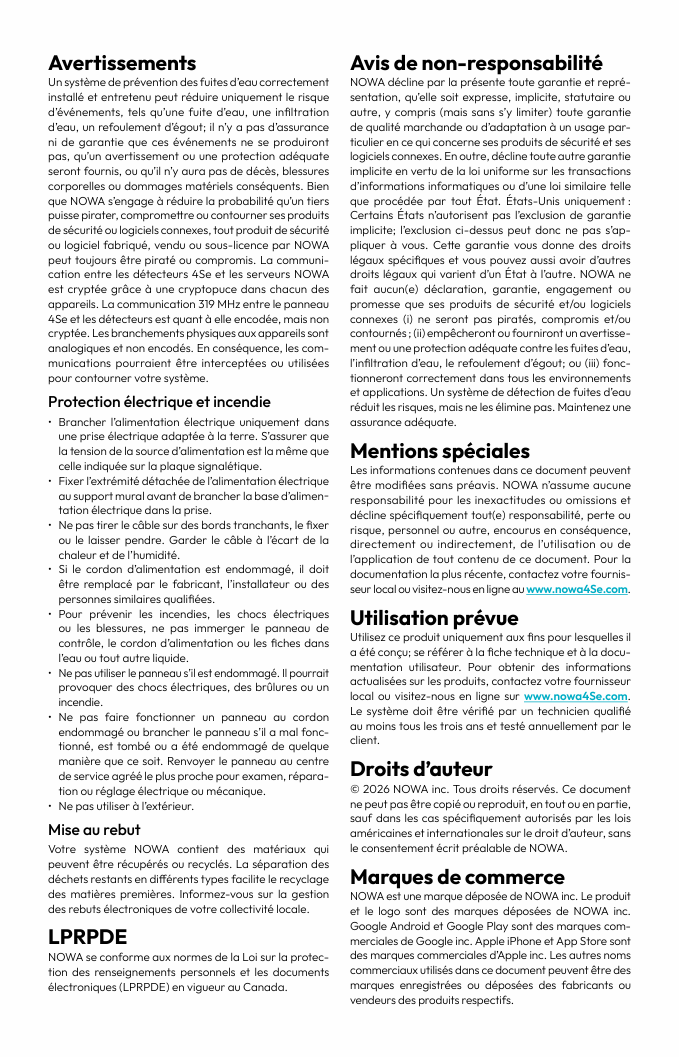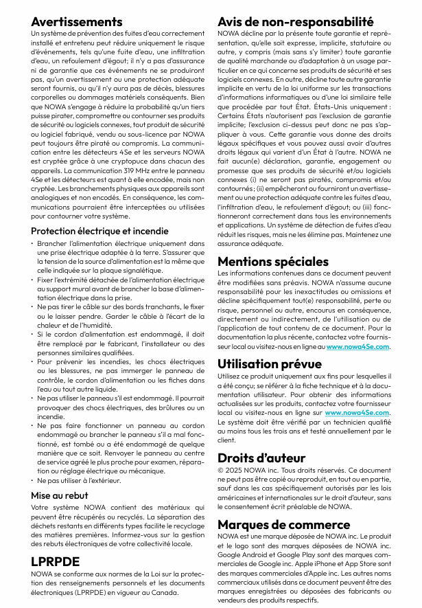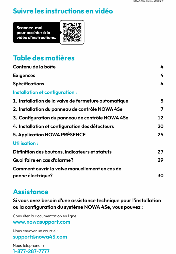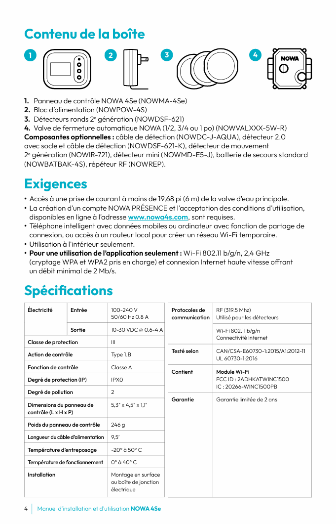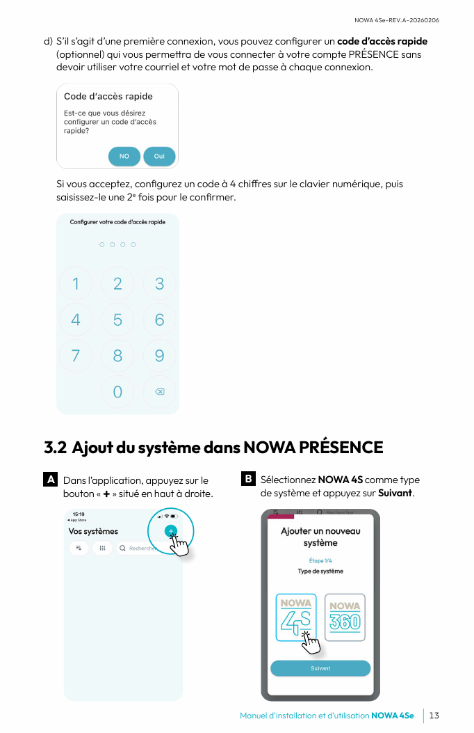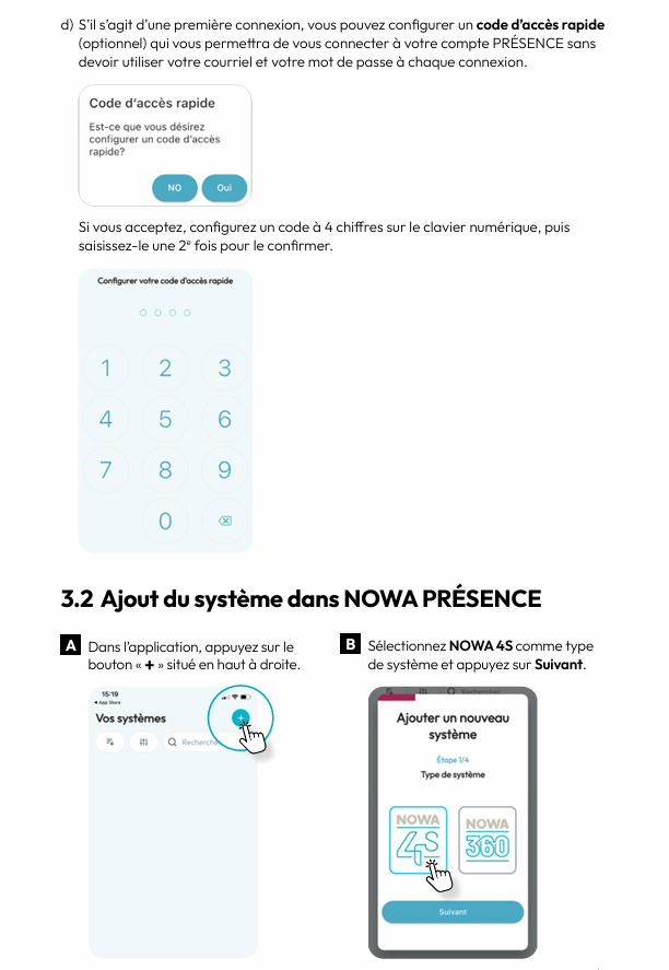 Voici le manuel d'installation et d'utilisation du système NOWA 4Se